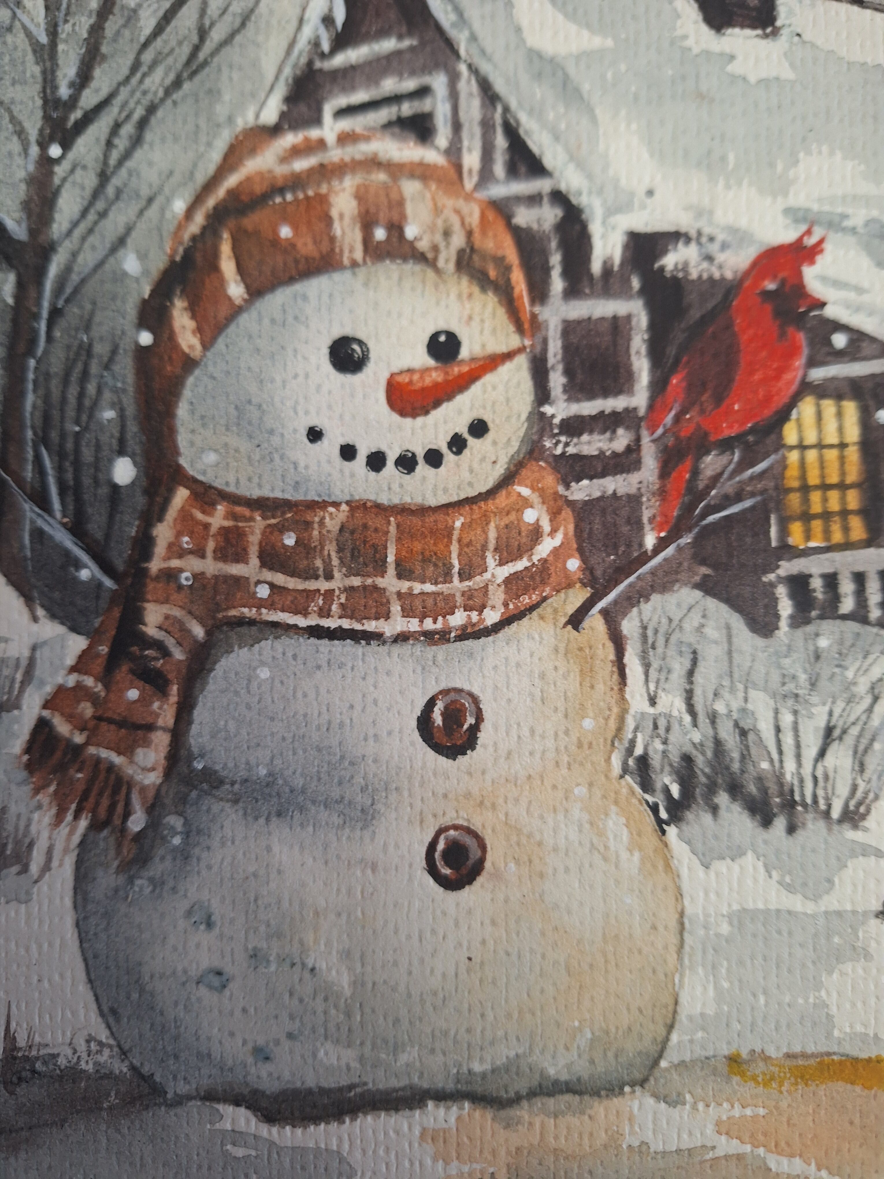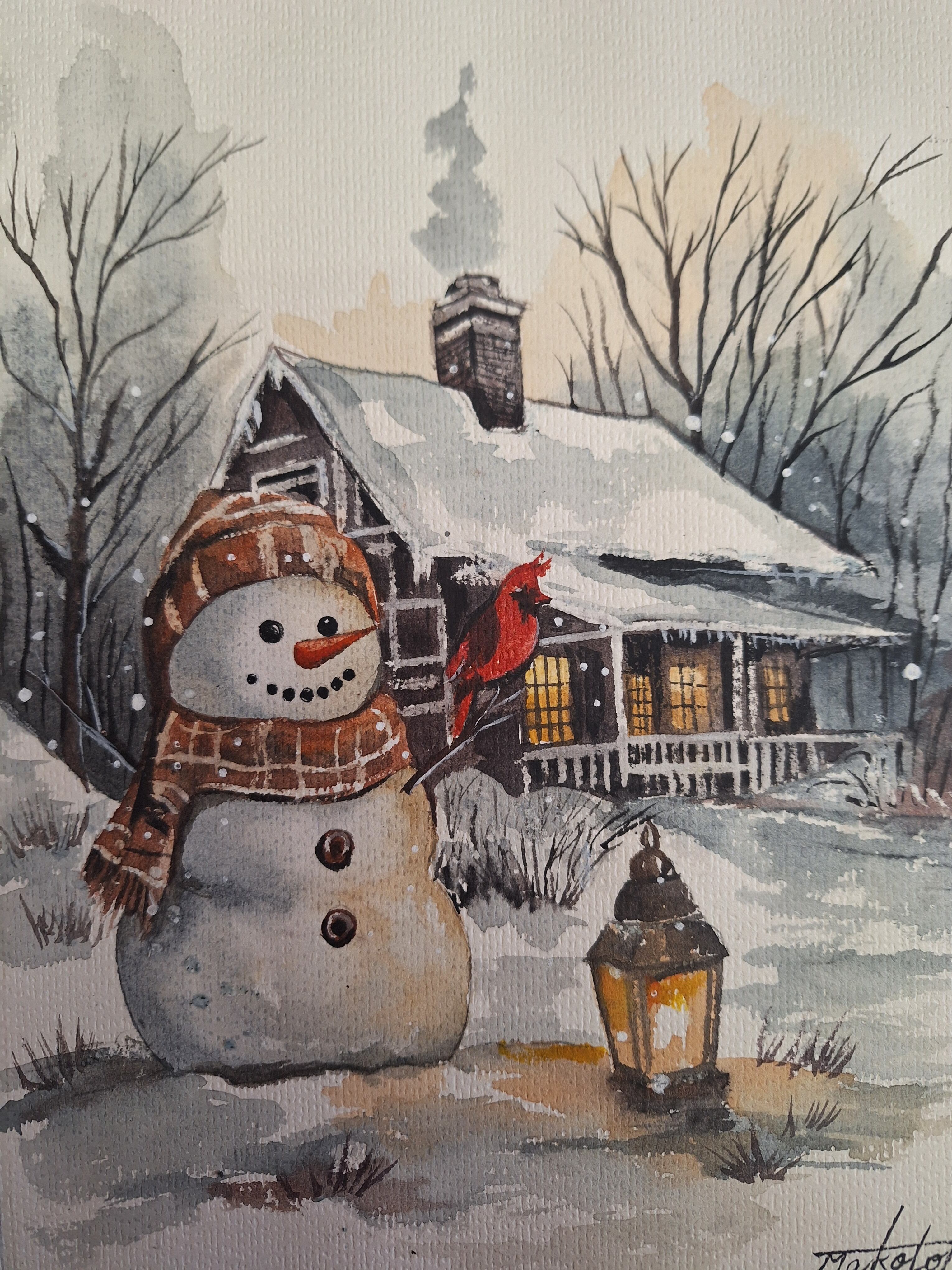 #水彩画 #風景画 #雪だるま #スノーマン #Snowman #絵画 #makochin #工房和み