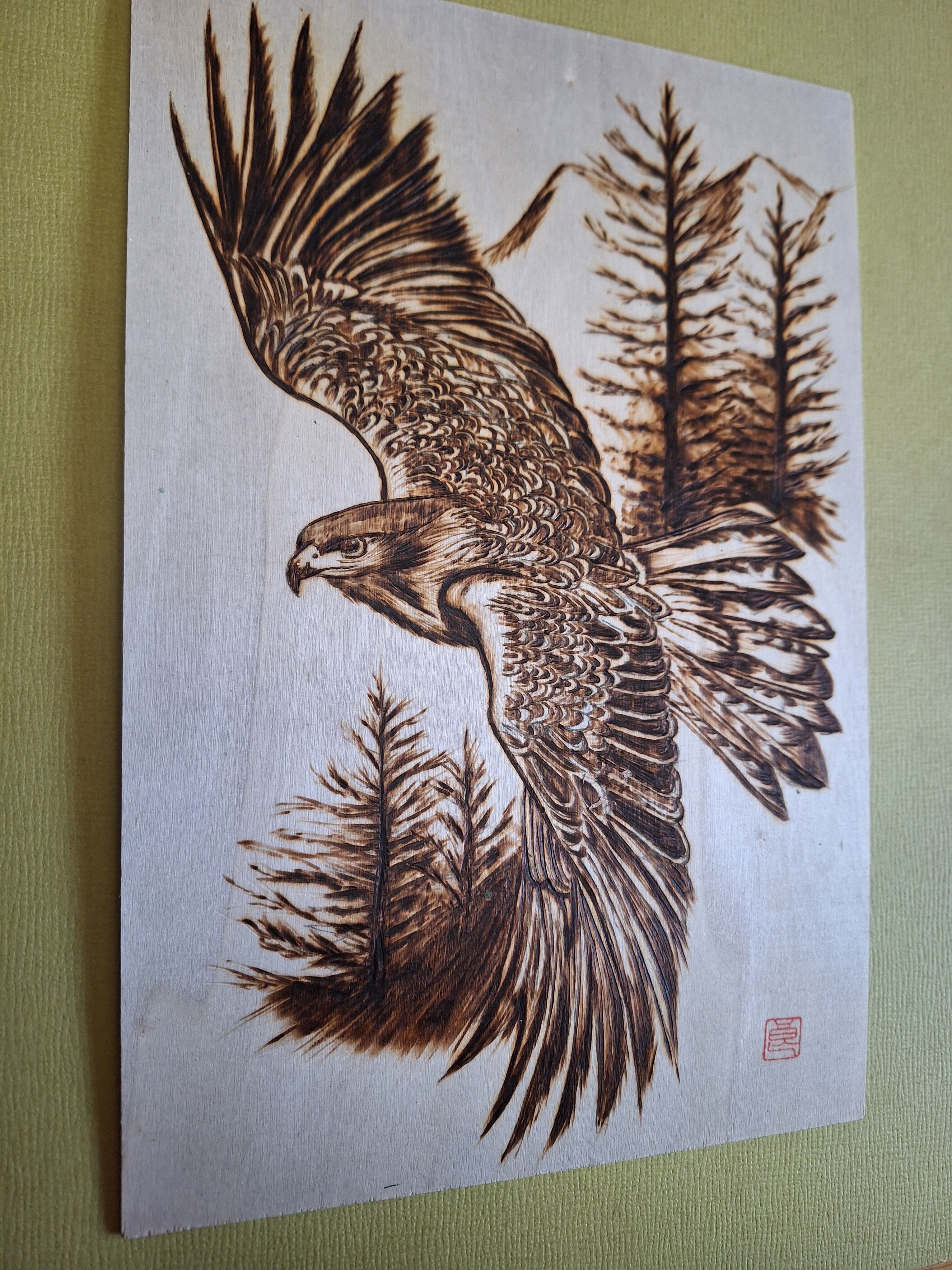 ウッドバーニングアート 空を舞うイーグル