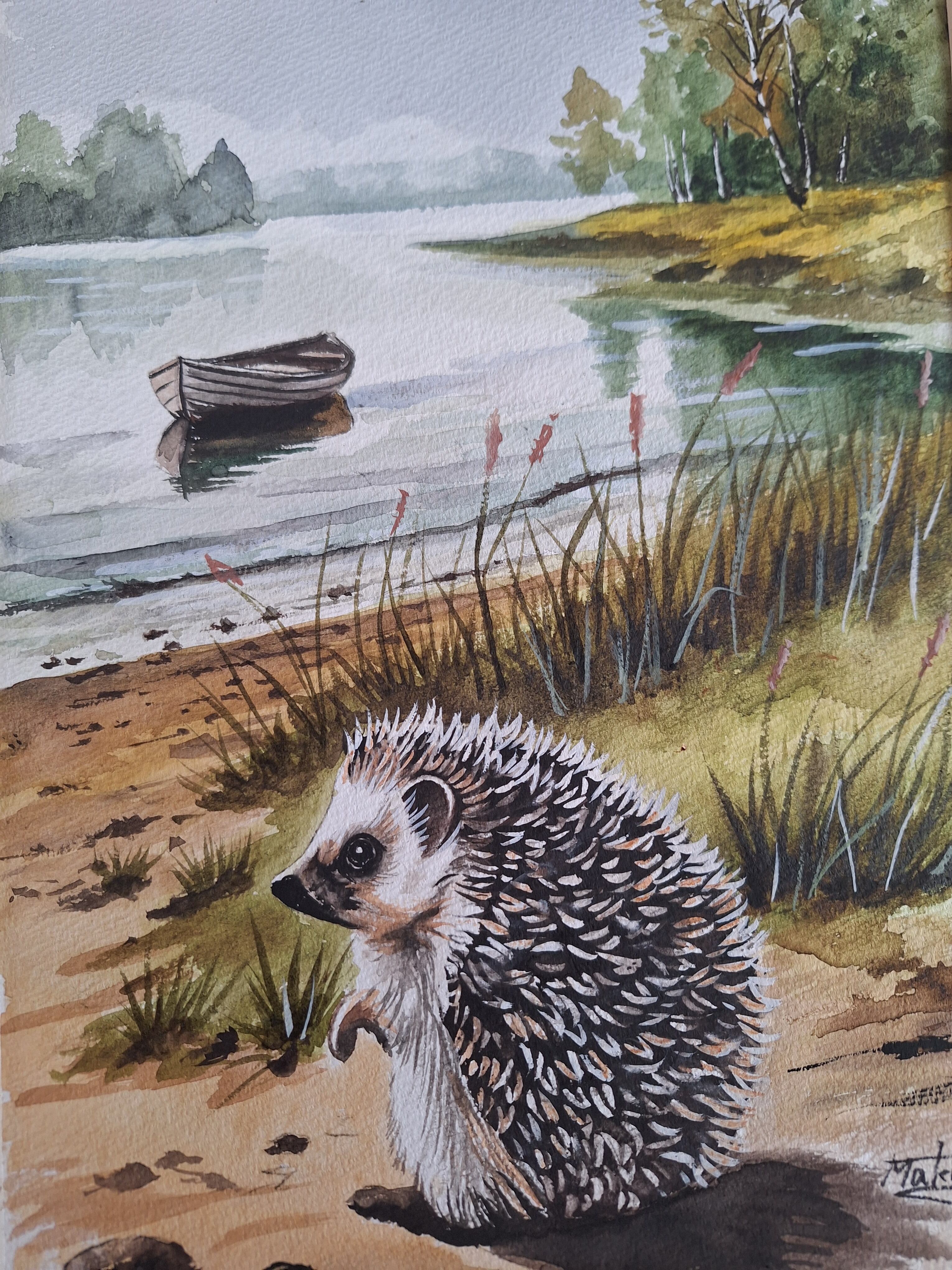 #水彩画 #ハリネズミ #動物画 #工房和み #makochin