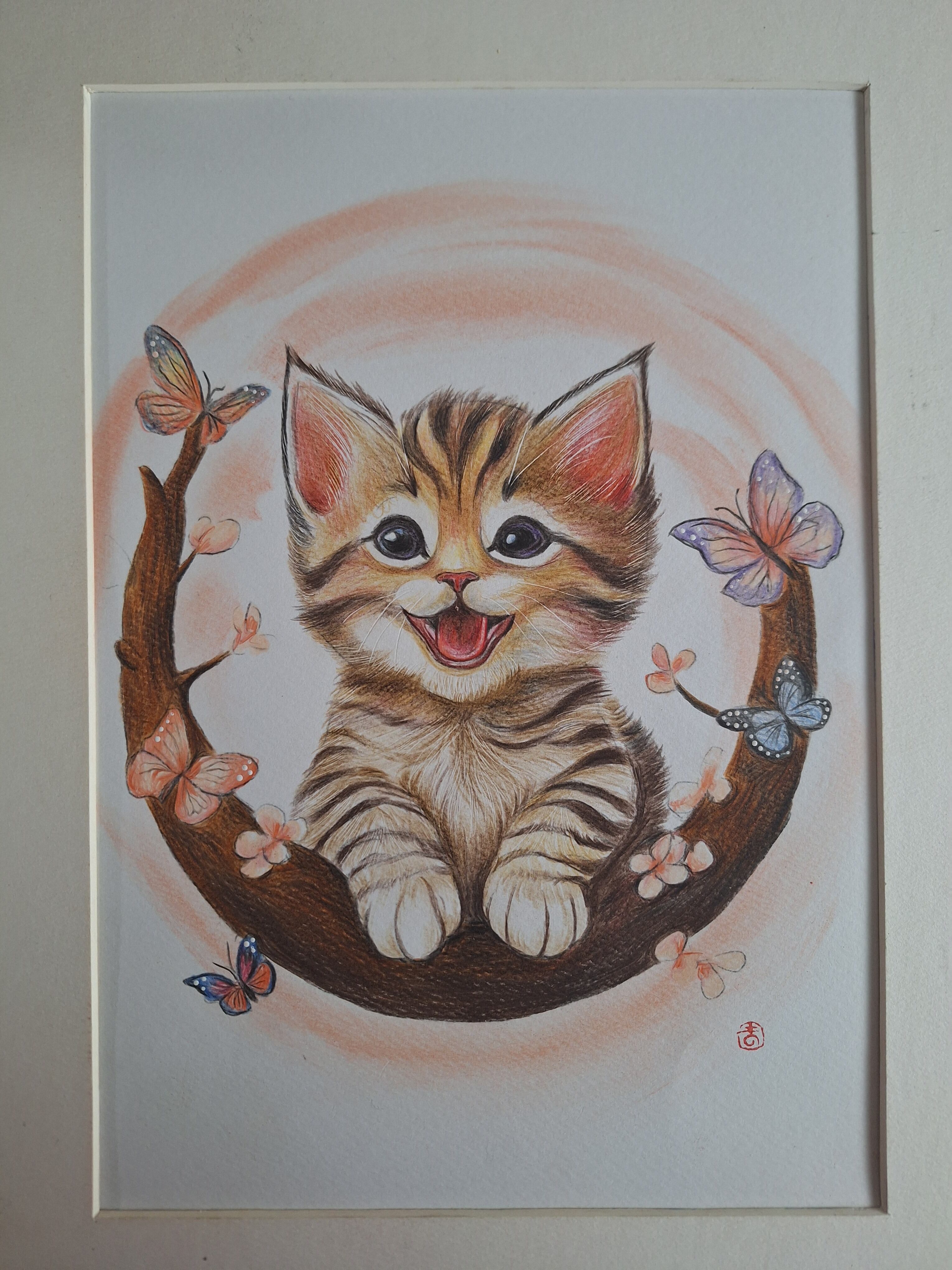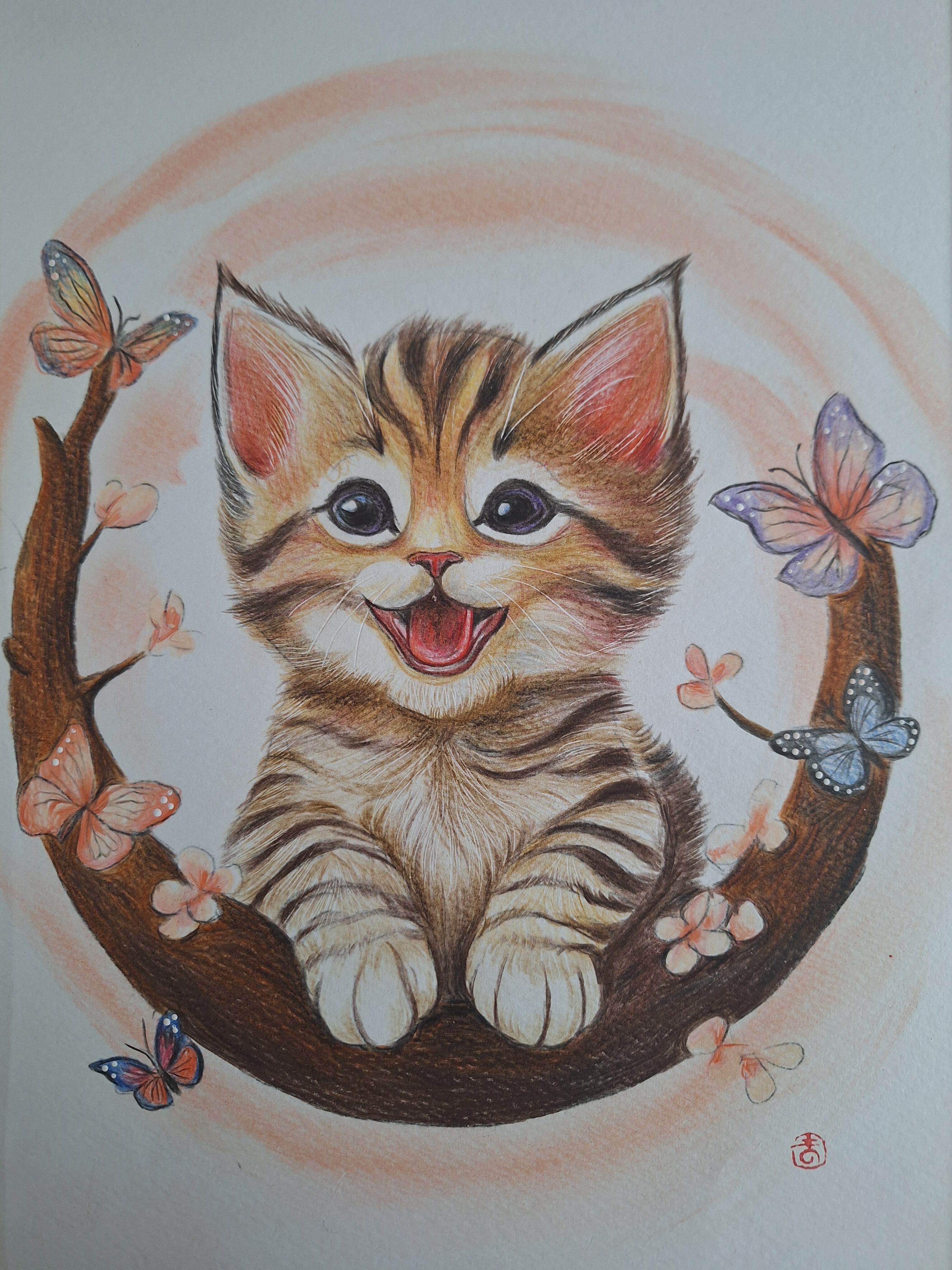 色鉛筆画 笑顔のかわいい子猫ちゃん