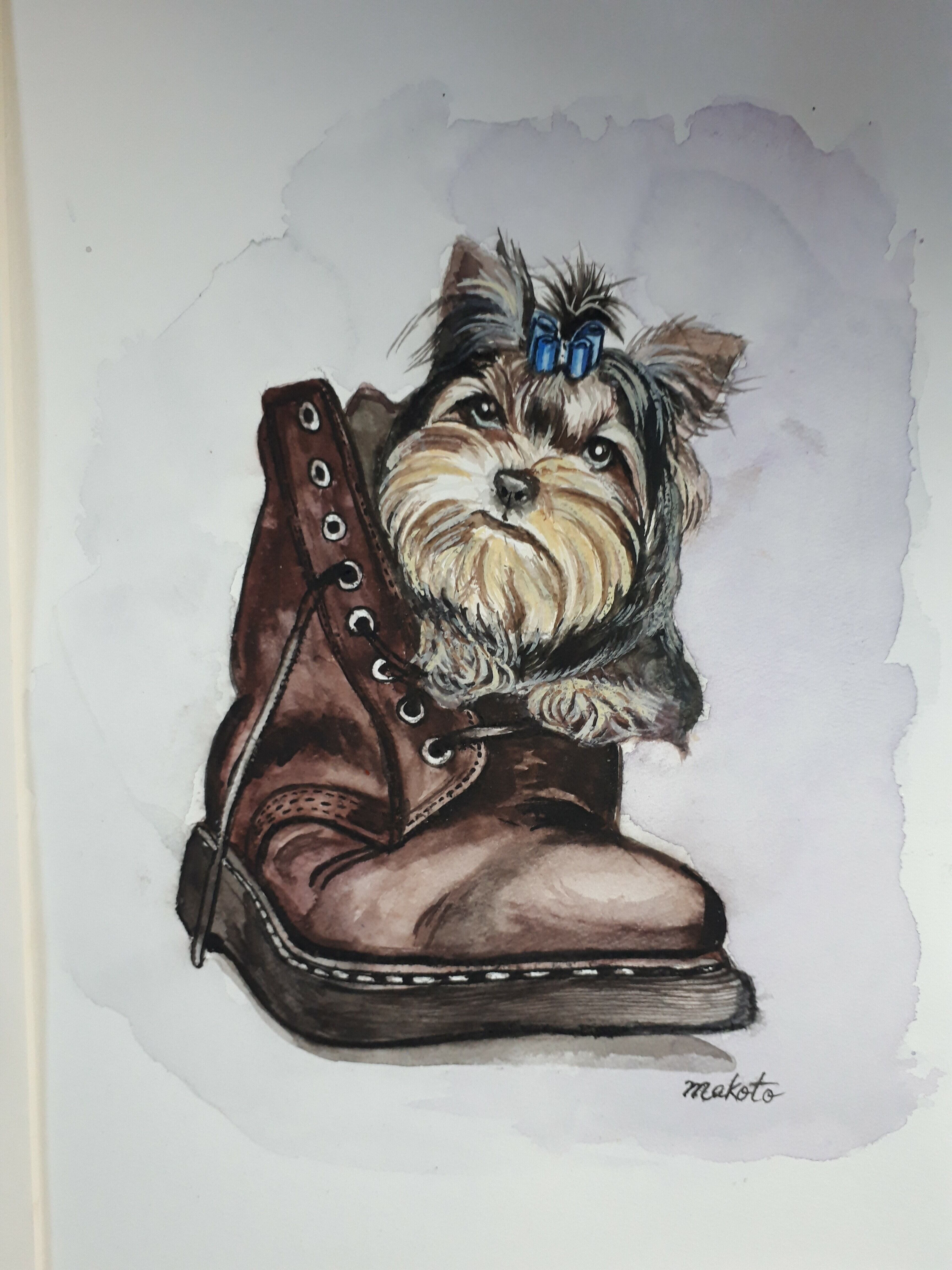 #水彩画 #子犬 #ヨークシャーテリア #動物 #可愛い犬