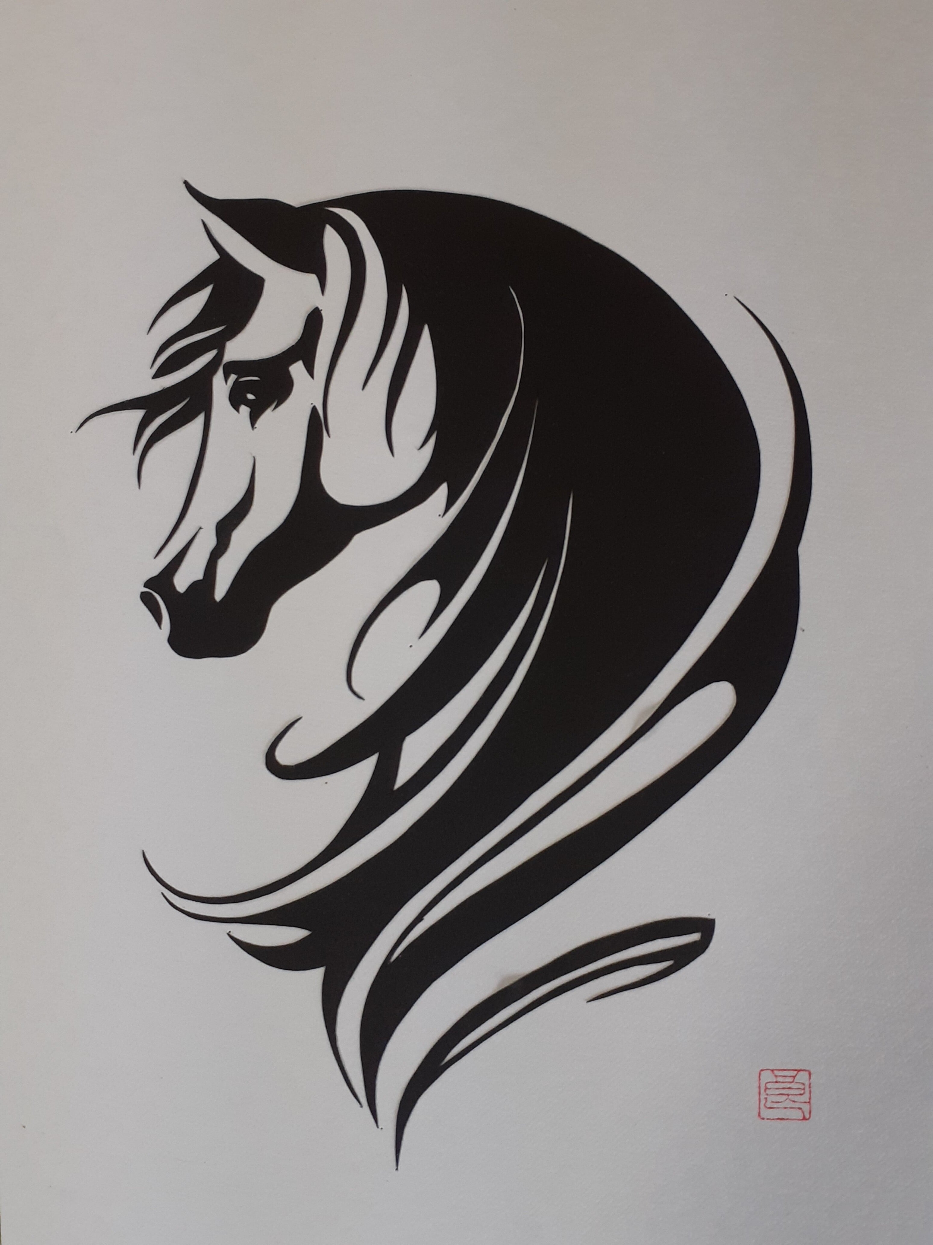 ヒマラヤの草原を力一杯走り回る野生馬の横顔を切り絵にしました。
