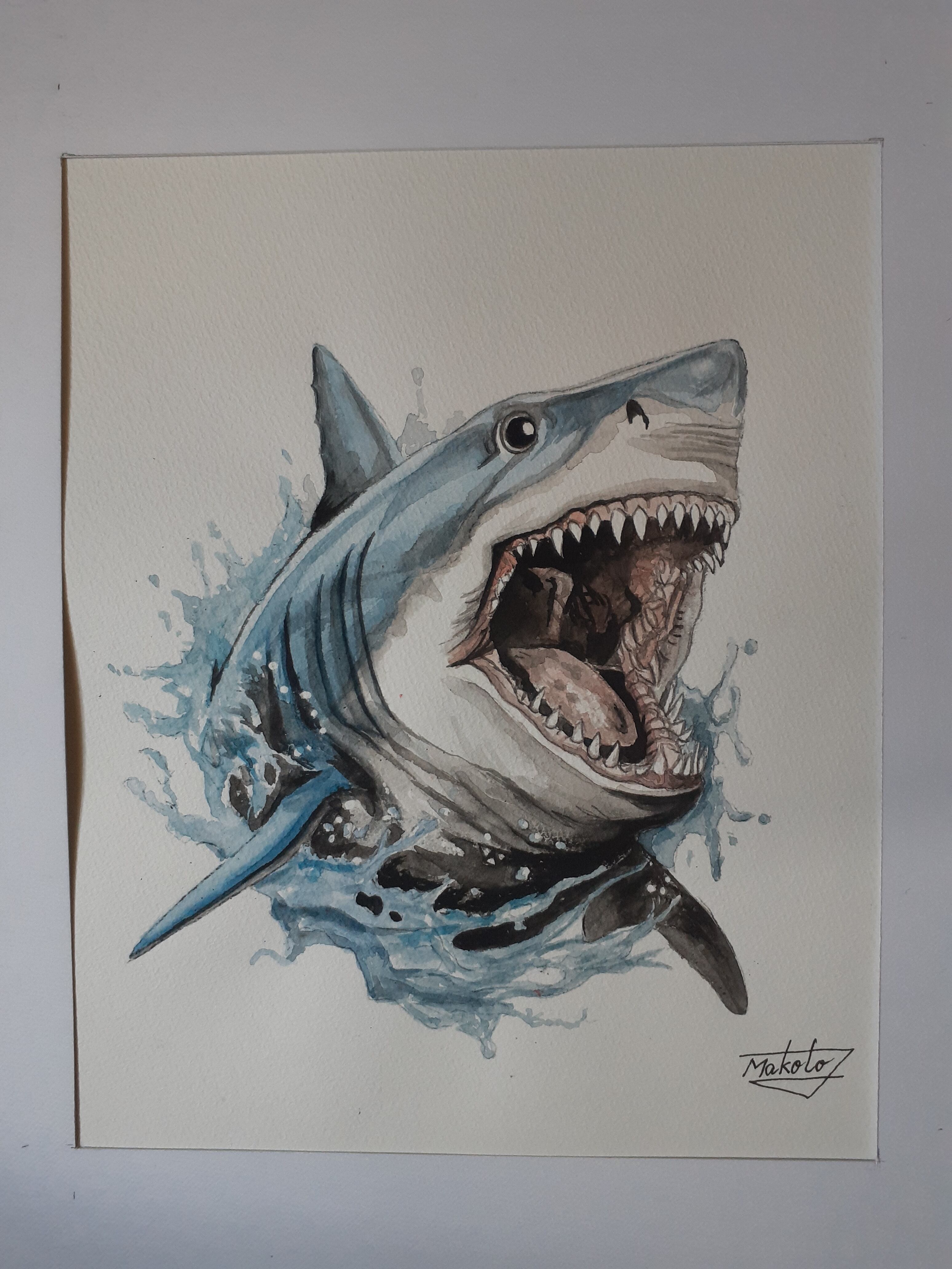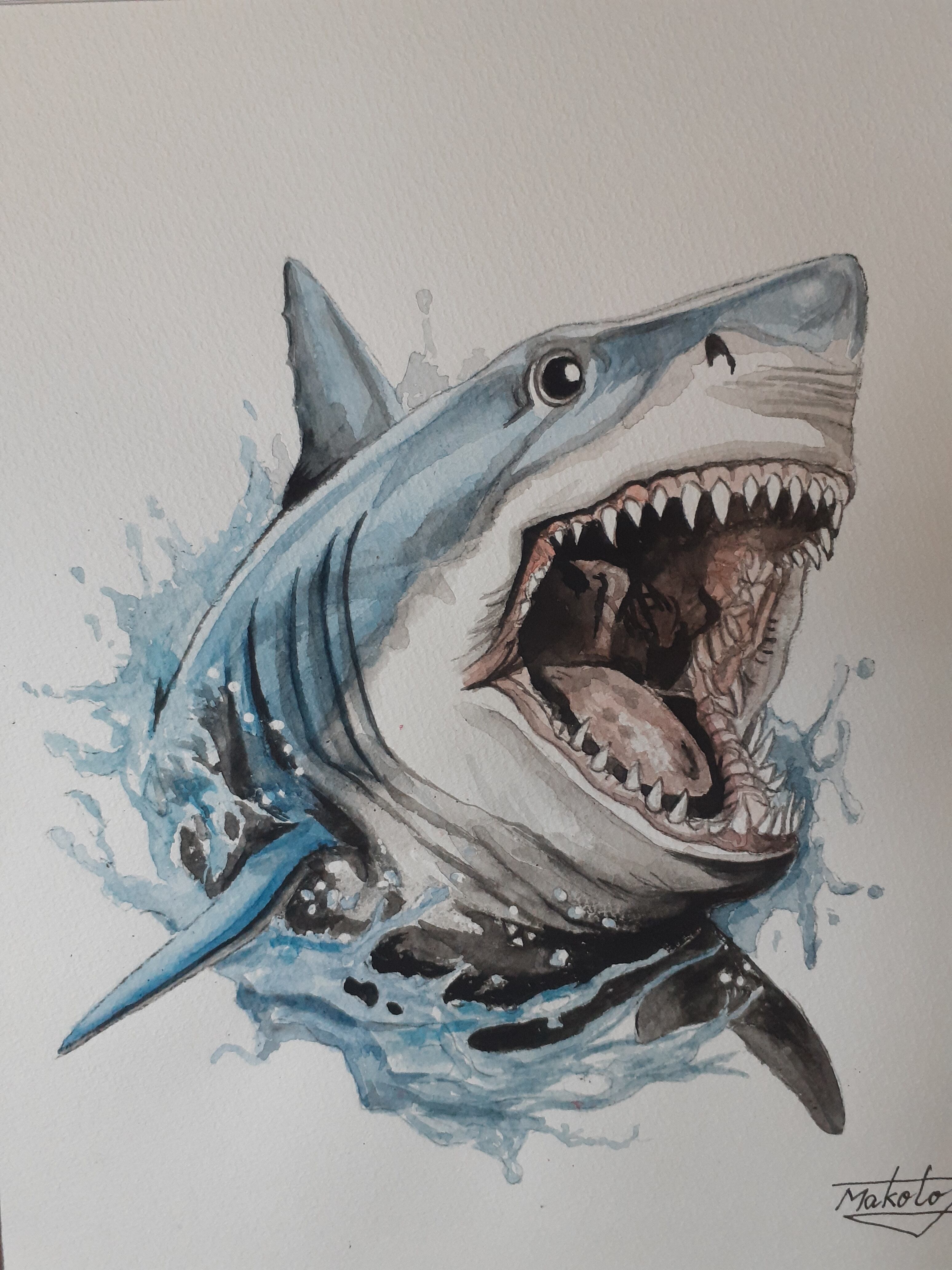 #水彩画 #絵画 #動物画 #シャーク #魚 #サメ #makochin #工房和み